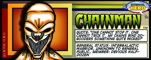 Chainman is an intergalactic villain who can project an extremely strong metallic alloy